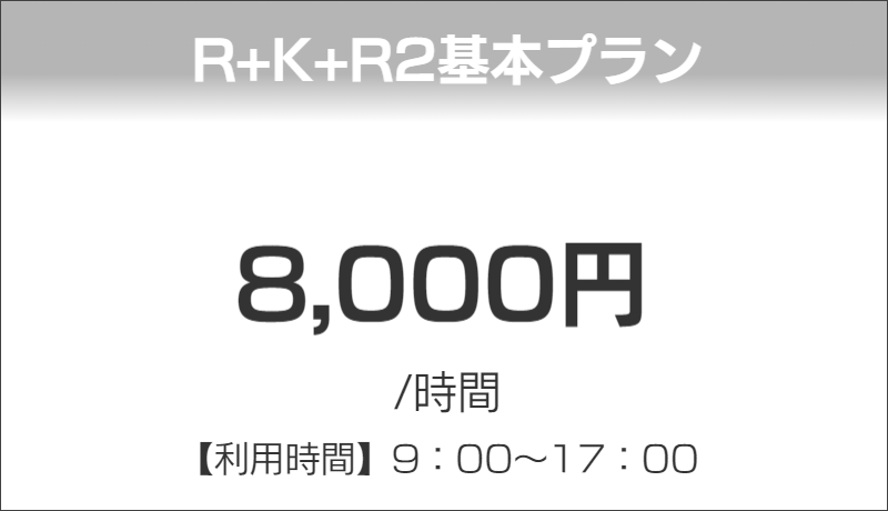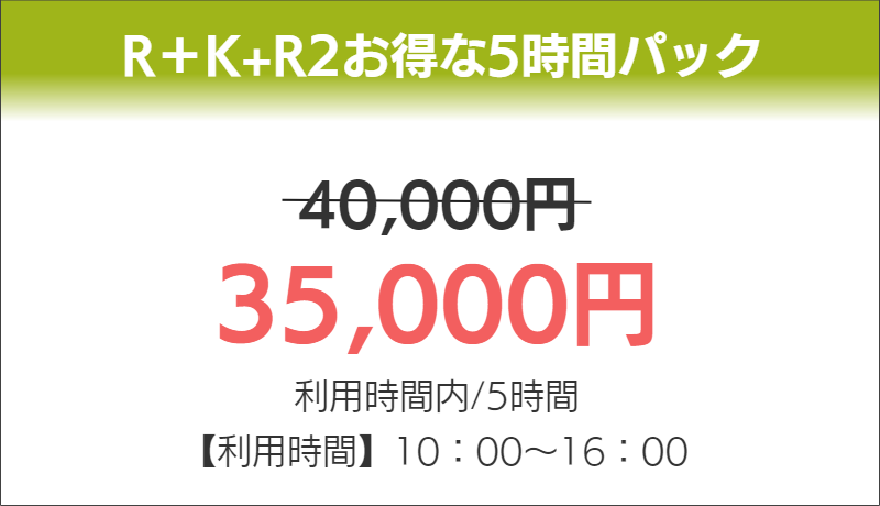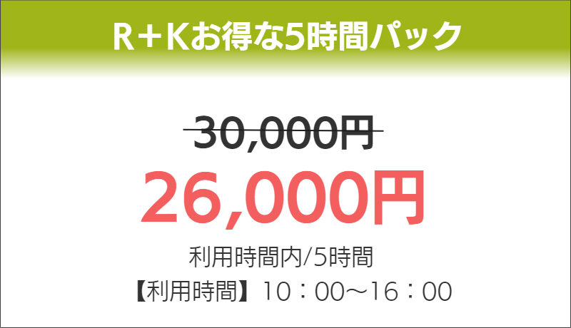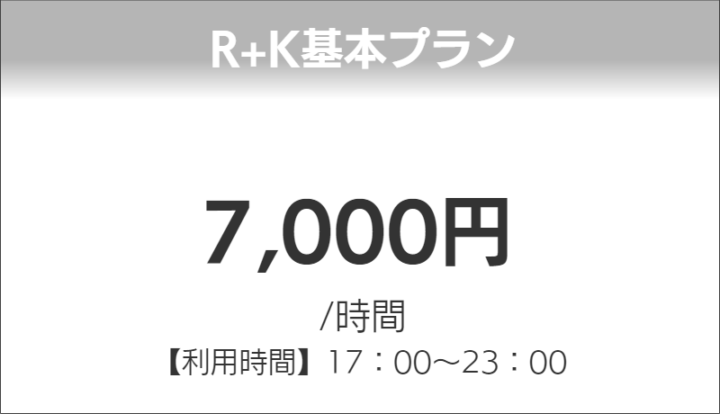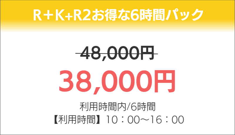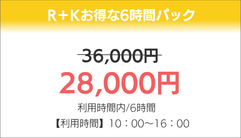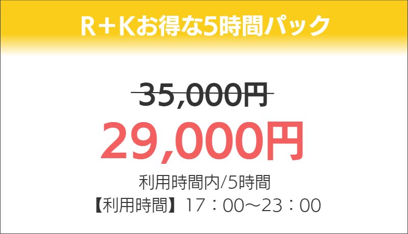 | 基本3時間から予約可能 ※昨今のコロナ情勢により人数を制限させて頂いております。 |